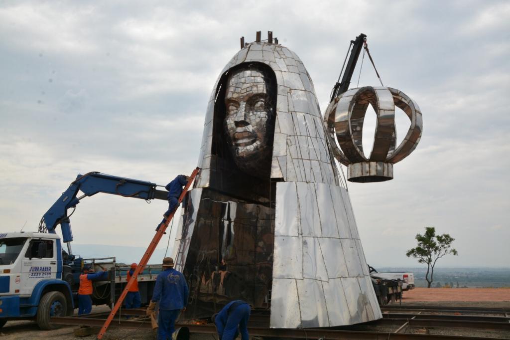 Tượng đài cấu tạo từ thép không gỉ, do nghệ nhân Gilmar Pinna tặng cho thành phố vào năm 2017. Tượng nặng 400 tấn, chiều cao 50m, cao hơn hẳn tượng Chúa Cứu Thế ở Rio de Janeiro (38m). Tượng đài ước tính trị giá 10 triệu reais (gần 2 triệu USD). Bức tượng được đặt ở vùng Itaguaçu, cách Đền thánh Đức Mẹ Aparecida khoảng 3,2 cây số. Đền thánh hiện cất giữ bức tượng gốc Đức Mẹ Aparecida bằng đất sét, màu đen, chiều cao 40cm.