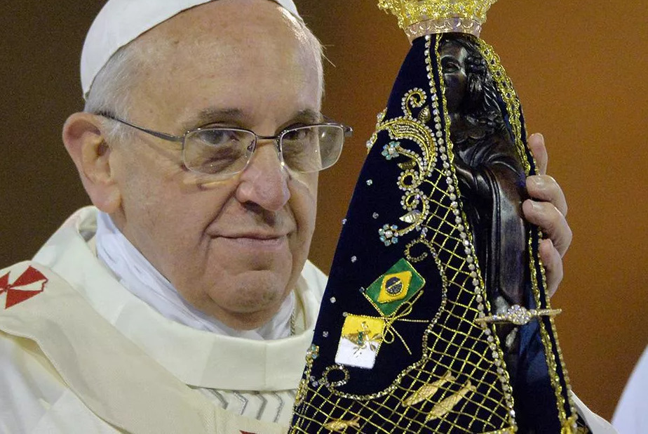 Sau đó, khi đem về ghép lại, họ phát hiện đây là tượng của Đức Mẹ Vô Nhiễm Nguyên Tội, và nhuốm màu đen vì nhiều năm nằm trong bùn lầy đáy sông. Trong suốt 15 năm, pho tượng được giữ ở nhà ông Filipe Pedroso, nơi các tín hữu tụ tập lại để đọc kinh Mân Côi. Lòng sùng kính Đức Mẹ lan rộng nơi các tín hữu, được phổ biến trên toàn đất nước này. Đến năm 1745, nhà nguyện đầu tiên thờ kính Đức Mẹ Aparecida được xây dựng. Đền thánh Đức Mẹ Aparecida được xây năm 1955, với sức chứa khoảng 45.000 người, chỉ thua Vương Cung Thánh Đường Thánh Phêrô ở Vatican. Ba vị giáo hoàng đã đến hành hương tại đây: Thánh Giáo Hoàng Gioan Phaolô II, năm 1980; Đức Bênêđictô XVI, năm 2007 và Đức Phanxicô vào ngày 24.7.2013.